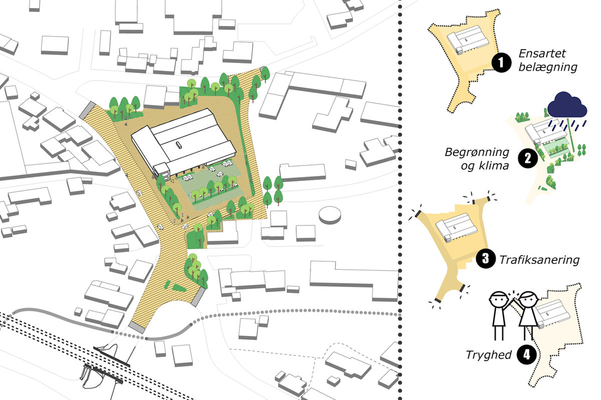 Dette skal understøtte, at området bruges til fælles begivenheder i byen, men også hverdagsophold, hvor der er rum til at nyde vejret på en sommerdag eller mødes med andre fra byen året rundt.