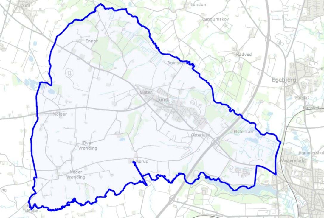 - Molger og Over Vrønding ligger vest for Lund og har ca. 5 km til Lundskolen via Nørre Snedevej og Tamdrup Kirkevej.