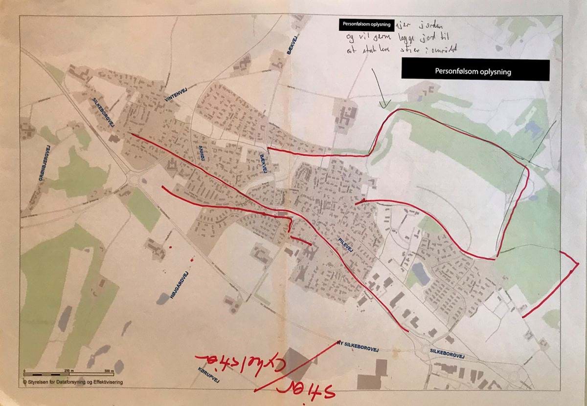 En af skitseforslagene til nye eller forbedrede stiforbindelser (fra workshop-deltagernes brainstorm)