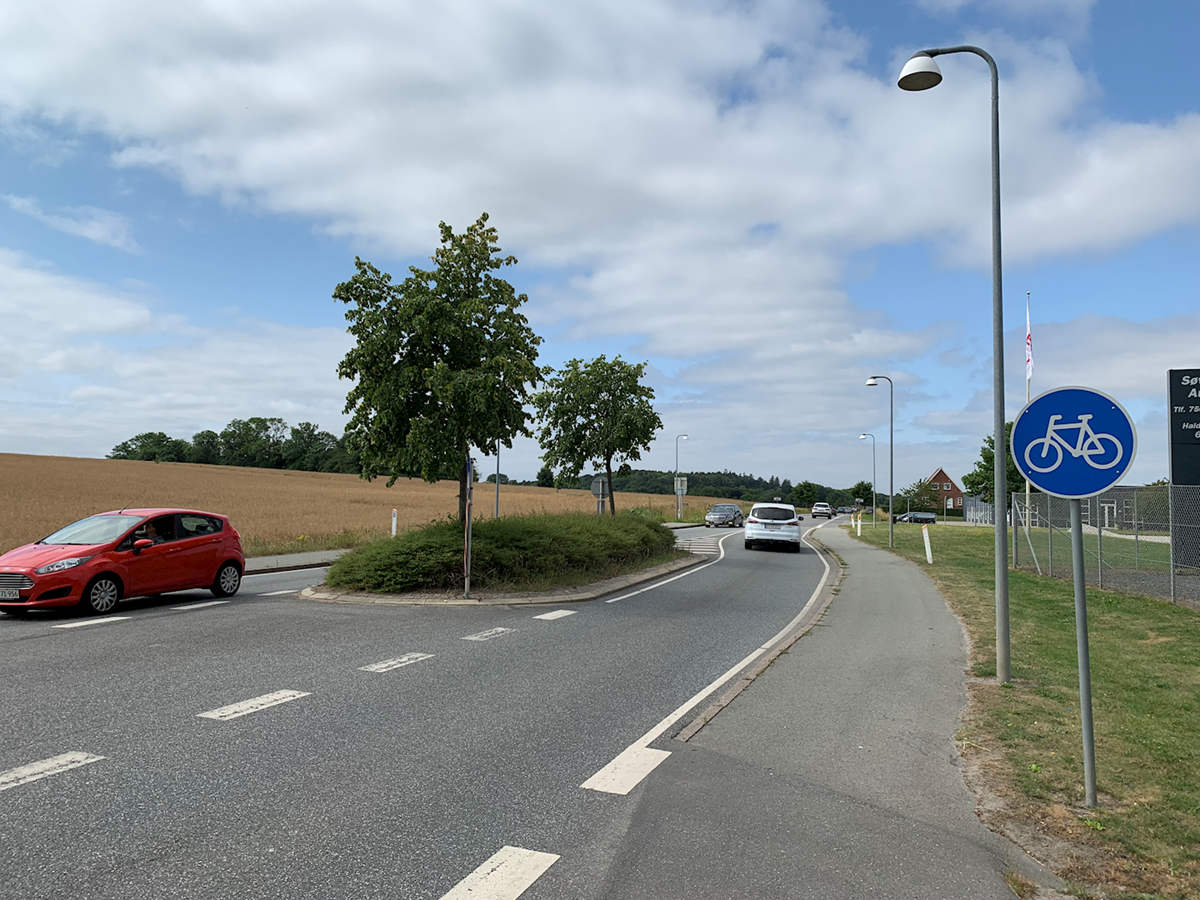 Udfordringer: 1. Trafik. 2. Bygninger ved Haldrupvej. 3. Brugsen