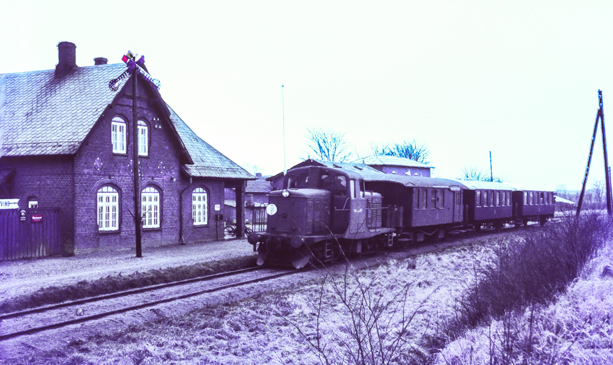 Stationen lå lidt vest for bykernen. Omkring stationen blev der opført et afholdshotel, en lægepraksis og en foderstofforretning. De øvrige byfunktioner blev liggende øst for bækken. Banen blev nedlagt i 1967. Foderstofforretningen er revet ned. Stationsbygningen er bevaret, men da perron og baneterræn er forvundet fremstår den som en villa.