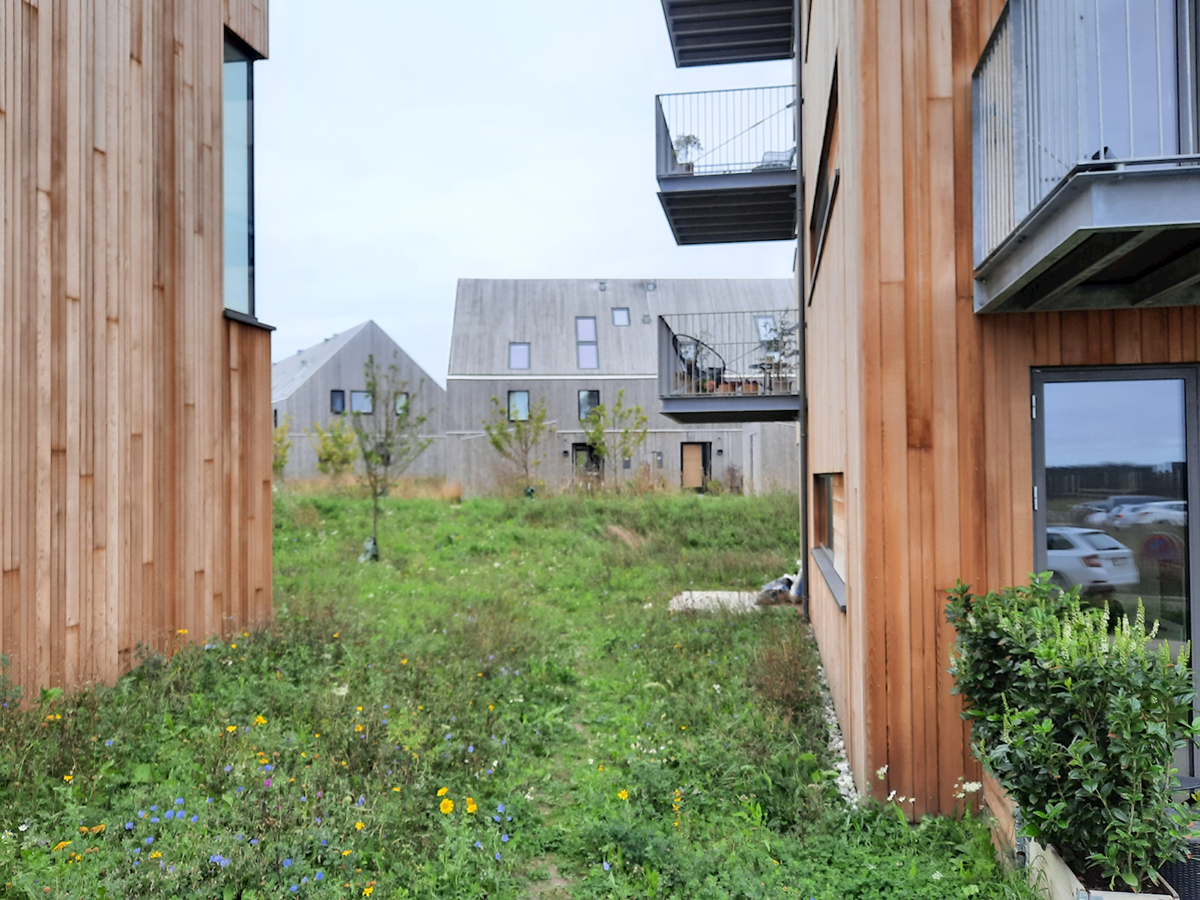 Referencefotos: 1. Bofællesskabet Lange Eng i Albertslund. 2. Bæredygtige boliger i Nye. 3. Eksempel på tiny house.