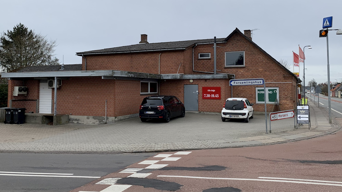 Tre steder langs Haldrupvej, hvor der foreslås indsatser omkring forskønnelse. 1. Brugsen set fra øst. 2. Brugsen og OK-tanken set fra vest. 3. Kroen