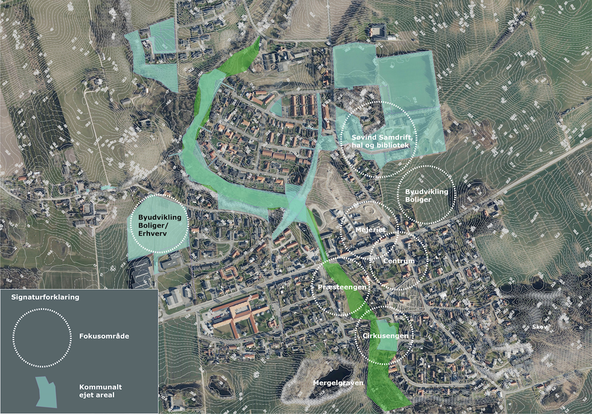 Kort over Søvind med fokusområder som indgår i strategierne.
