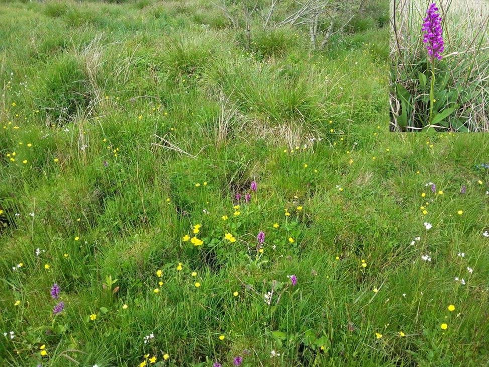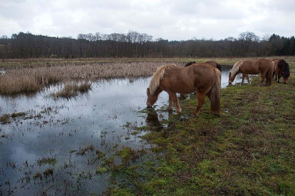På billedet ses et vådområde. Området plejes med græsning, der bla. er med til at holde vegetationen lav til gavn for sjældne plante- og dyrearter.
